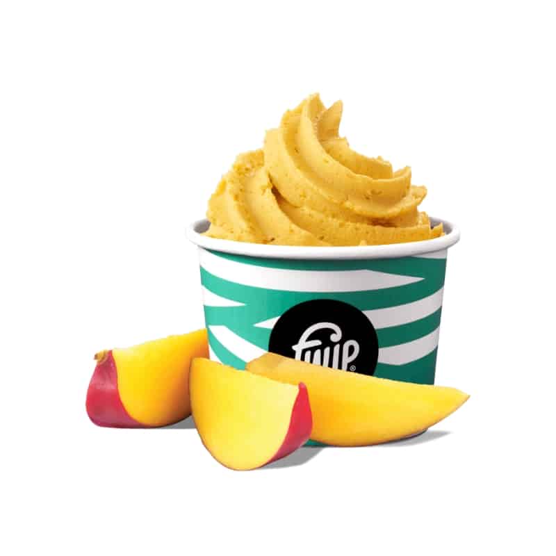 Lidt ferskenagtig, lidt abrikosagtig med et strejf af melon. Alphonso-mangoens safranfarvede frugtkød smager af alle disse ting. Bare bedre. Vores kommer fra Indien, hvor de vokser sig saftige og velduftende, inden de knuses og forvandles til vores solskinsfarvede, mælkefri sorbet.